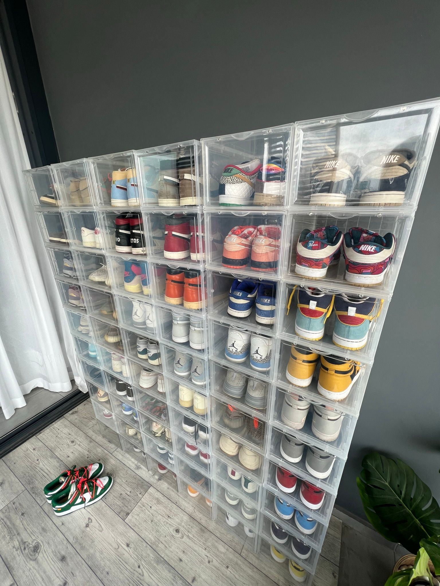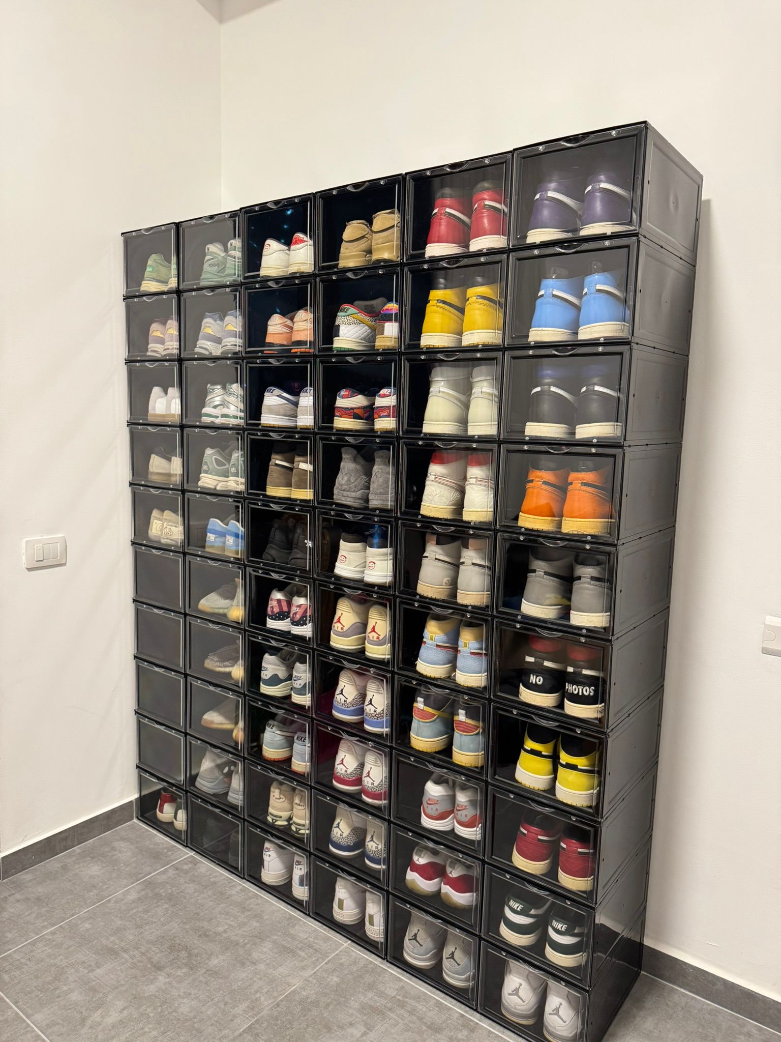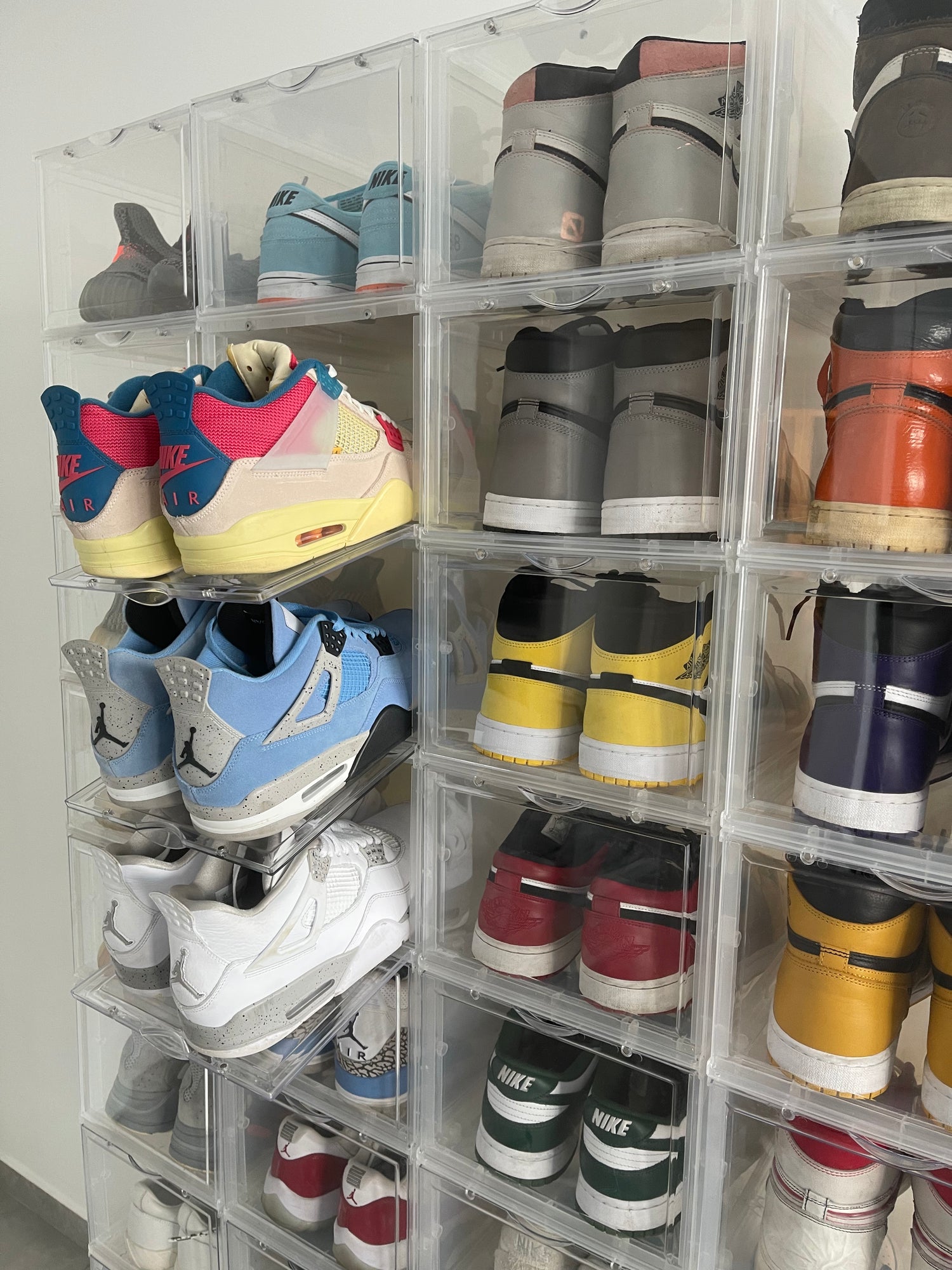 Boxes for storing sneakers are currently considered the most sought-after product in the field of accessories for sneakers. The boxes come in black/transparent colors and there is a transparent door on the front of the box that allows you to know which pair is where and provides easy and convenient access. Apart from all this, the box is designed with a clean and polished look that will look great in the closet or even just in the corner of the room.